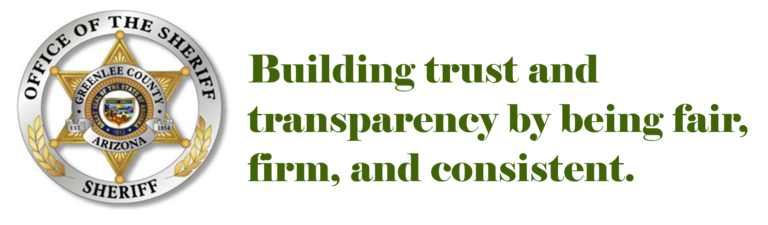 The Vison of the Greenlee County Sheriff’s Office is to provide professional law enforcement service to the citizens and guest of Greenlee County by maintaining a proactive law enforcement approach to solving crime and truly caring for the people by creating a partnership with the community. Building trust and transparency by being fair, firm, and consistent.