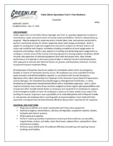 July 17, 2025 By Reagan Bentley Comment off Public Works Operations Tech II Fleet Mechanic-pdf Previous Public Works Tech II-PDF Next 07-22-2025.agenda